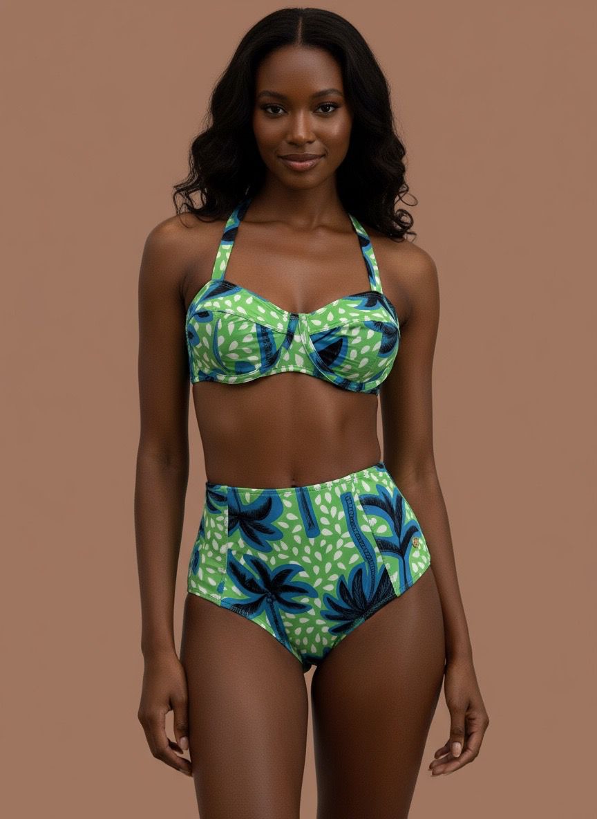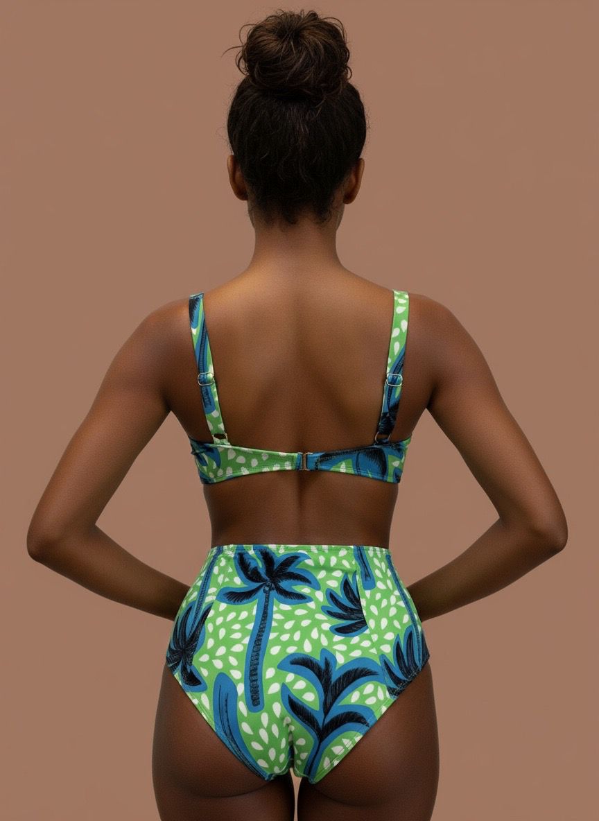 Top faixa com bojo e alças removíveis. Calcinha cós alta com pala que permite modelar a silhueta.